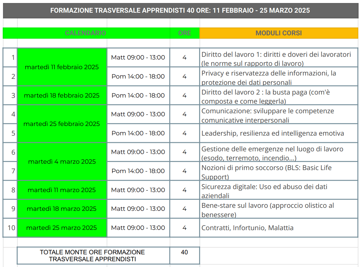 Si comunica l’avvio del corso di Formazione Trasversale (40 ore in n.10 lezioni), periodo Febbraio-Marzo 2025, con il seguente programma didattico:
